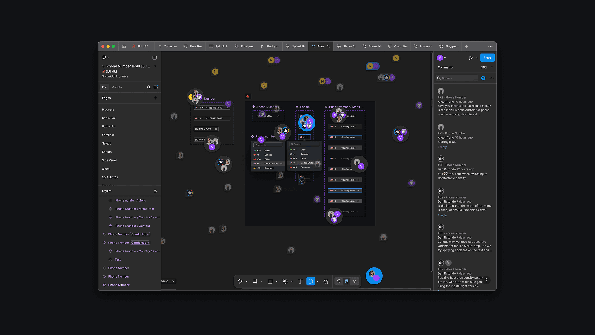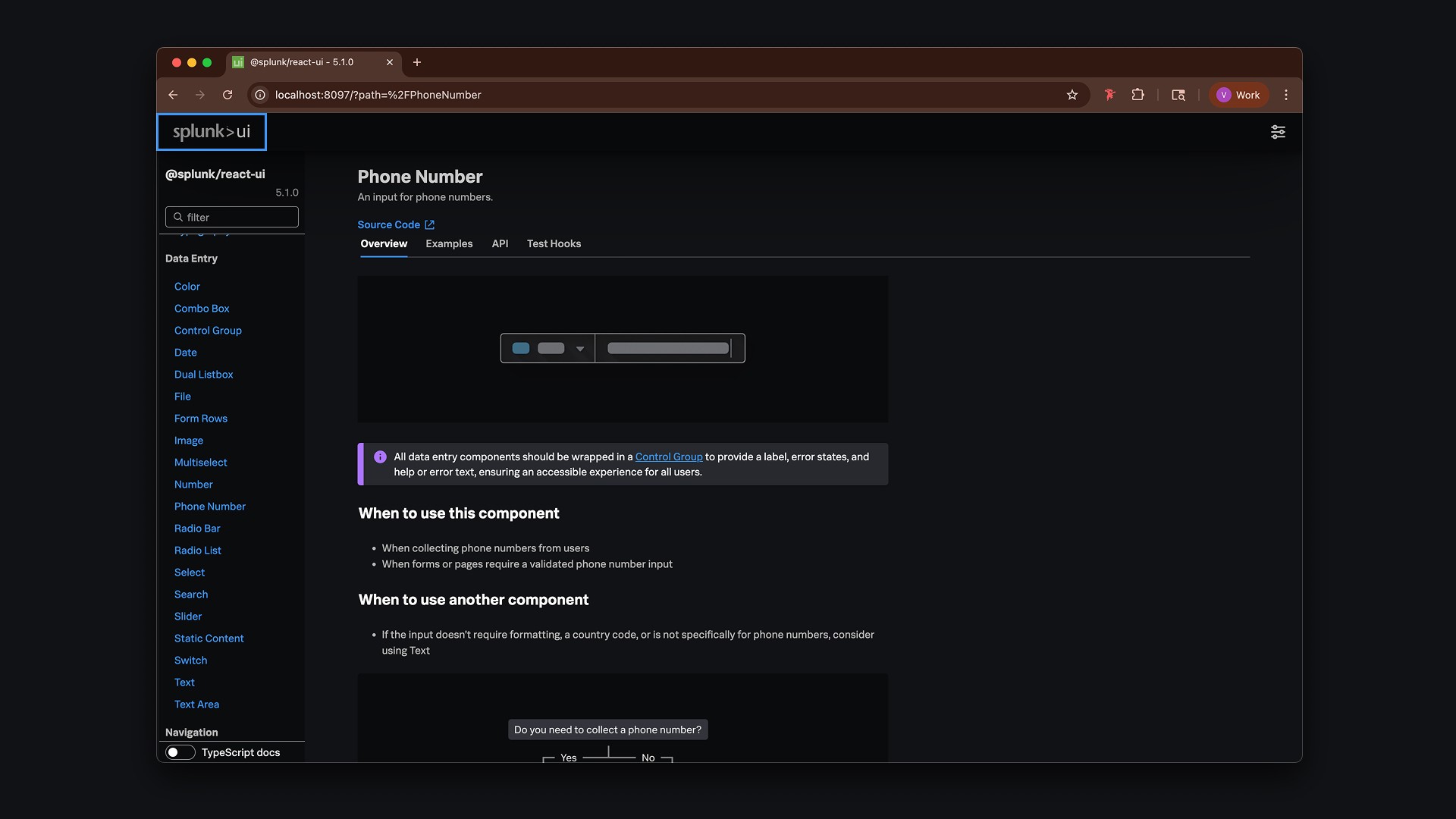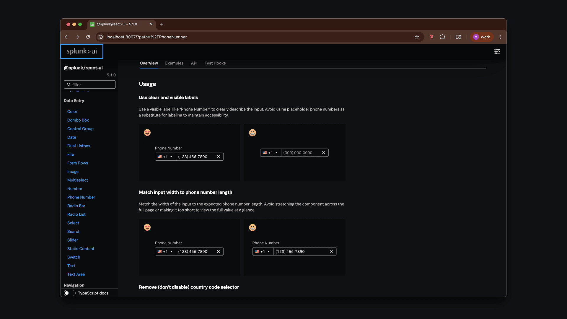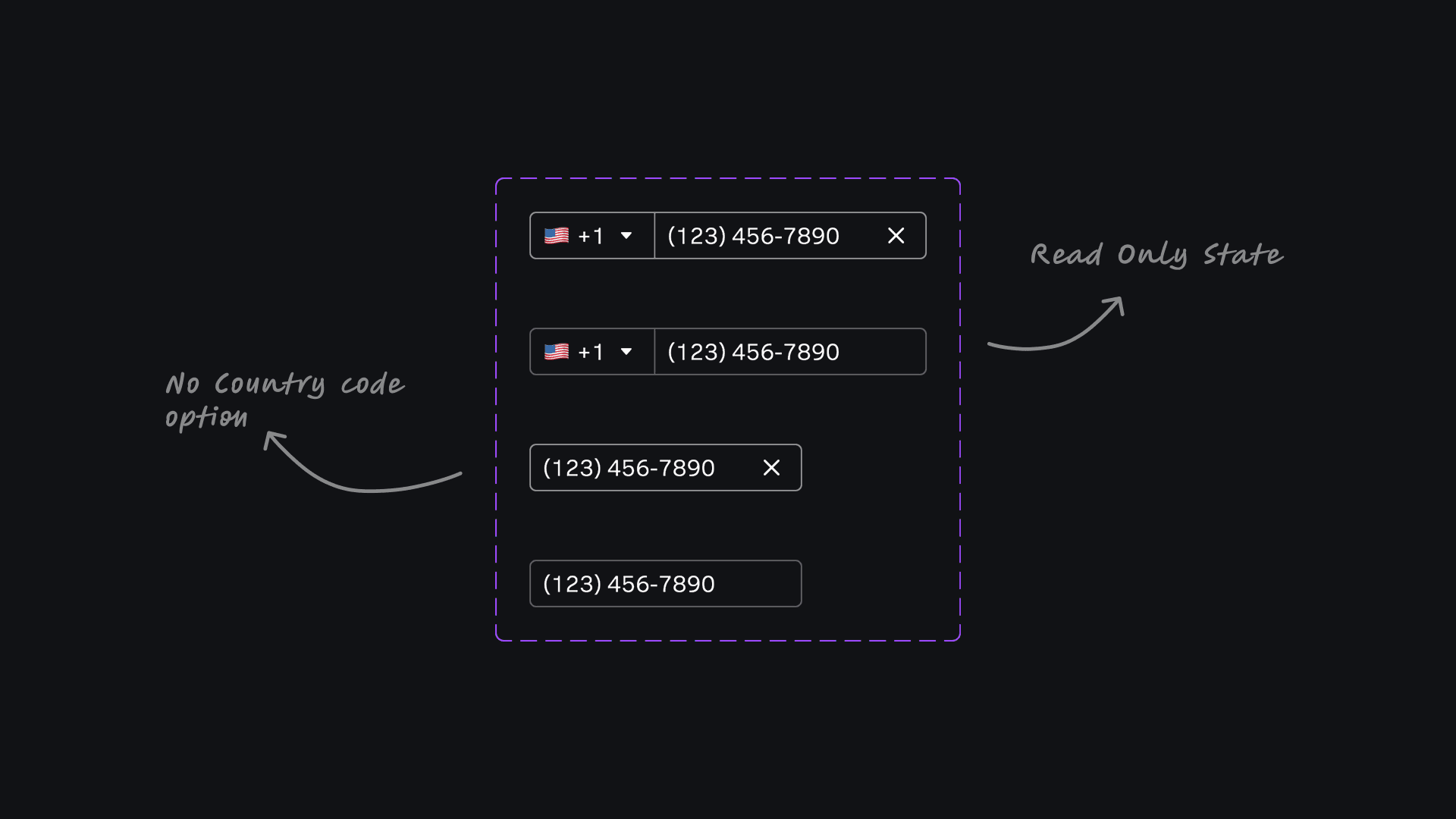 I began by interviewing designers and engineers across Splunk to understand how phone inputs were being used. The conversations highlighted consistent needs: a country code selector (with optional flag icon), auto-formatting to reduce errors, and strong accessibility support. Beyond features, stakeholders emphasized the importance of flexibility — the component had to adapt to different workflows without forcing workarounds.